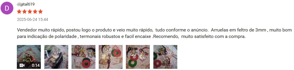"excelente produto muito pratico. Material de boa qualidade, vou renovar a avaliação após testar no meu carro. entrega muito rápida. Material de boa qualidade e fixa muito bem,, testei apenas os encaixes dos fios e é muito firme, para quem tá cansado de gastar com terminais ruins esse é uma boa opção, eu indico muito."