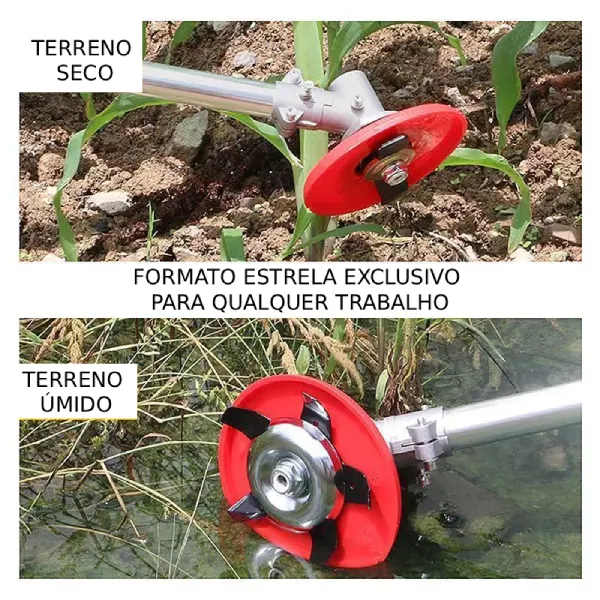 Sim! É seguro de usar em qualquer ambiente. O produto adaptada em solo seco, úmido, lama ou arrozal. Recomendamos fazer o uso do disco de 5 pontas em solos úmido e molhados e da serra de 2 pontos em solo seco.