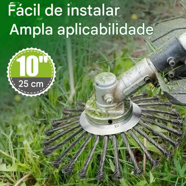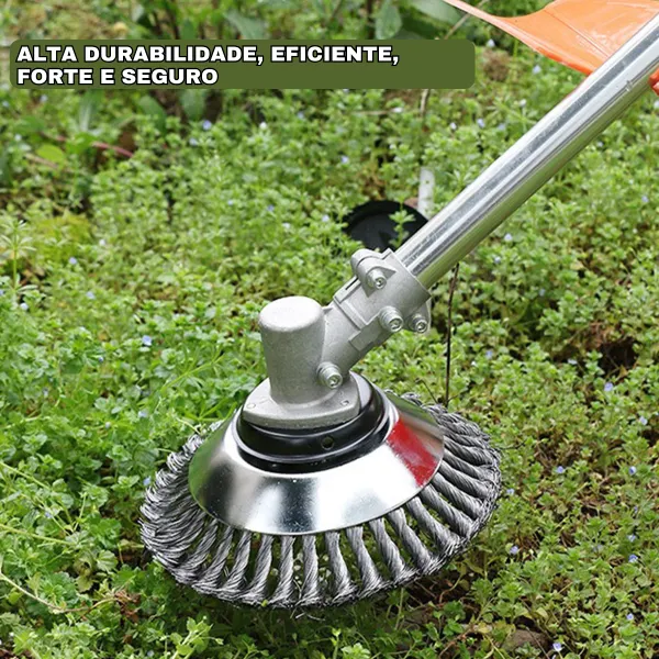 Com milhares de fios de aço de carbono HS435 ele é projeto para ser compatível com roçadeiras a gasolina (eixo 25,4 mm), é a única solução para quem busca eficiência sem esforço físico e sem perder tempo e qualidade.