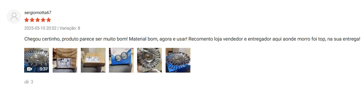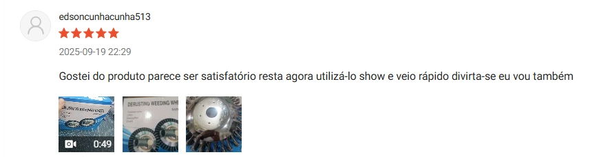 "Usa fios de nylon para limpar a minha fazendo e não aguentava mais de tanto que esse aquel lixo quebrada e esforçava a minha roçadeira, meu motor estragou e o cara disse que podia ser o fio de nylon que era um modelo ruim, passei a usar esse disco e tem me agradado muito, é o segundo, chegou muito rápido.