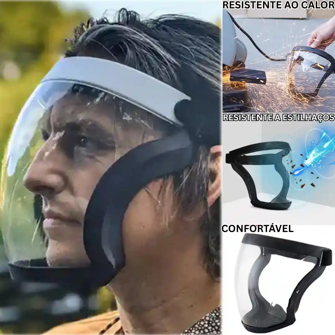 Imagine roçar com roçadeiras, serrar metais e madeira sem frespas voando na sua cara e querendo furar seu olho. Com nossa máscara você pode. Material de alta qualidade.