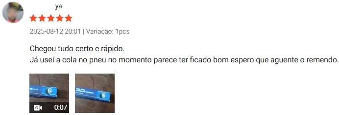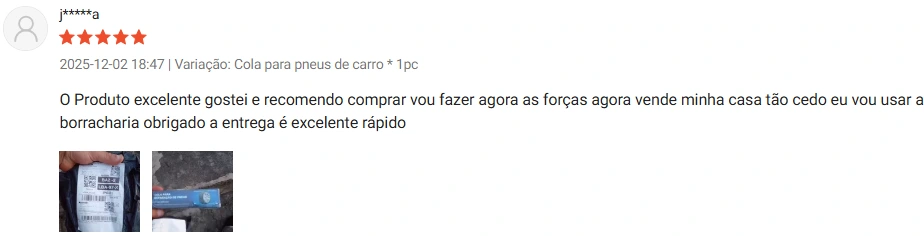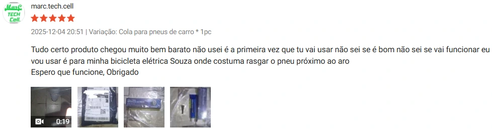 "Chegou muito rápido e me surpreendeu com a qualidade, este selante para reparo de pneus de carro é uma verdadeira salvação! Super fácil de usar – não são necessárias ferramentas, sela perfurações instantaneamente. Deixa você voltar à estrada rapidamente, muito bom mesmo, recomendo."