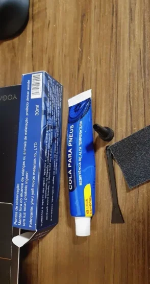Perfeito, essa cola é muito eficaz. Perceba que ao secar, a cola não permanece muito preta, ela fica cinza escuro bem bonito. O melhor é que ele preenche perfeitamente a fenda ou outro dano que o pneu tenha... Usei e resolveu meu problema ainda sobrou muita cola no tubo,.."