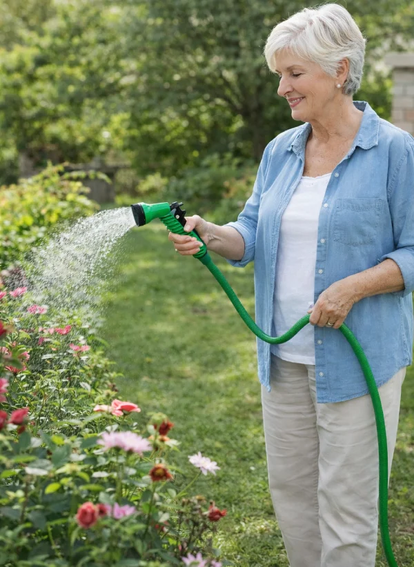 Nunca mais lute contra mangueiras pesadas e rígidas.Essa mangueira é leve, flexível e nunca dobra ou se emaranha.Você cuida do seu jardim com conforto e sem esforço.