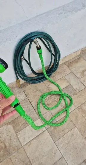 "Gente uma das melhores comprar q fiz, a mangueira tem varias opçoes de jatos de agua. Eu comprei a menorzinha e mesmo assim ela é enorme. E outra, chegou super rapido, tipo em 4 dias. Amei! Eu recomendo muito a loja e o vendedor."